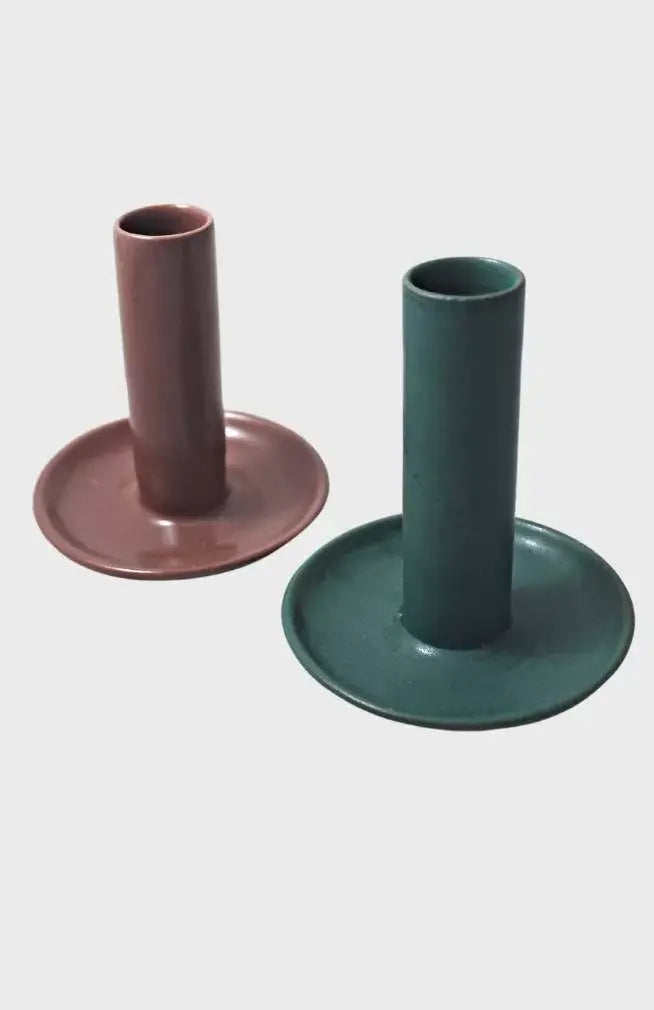 Stonewear long taper candleholder, assorted colors, 10cm tall X 9cm base, sold individually.