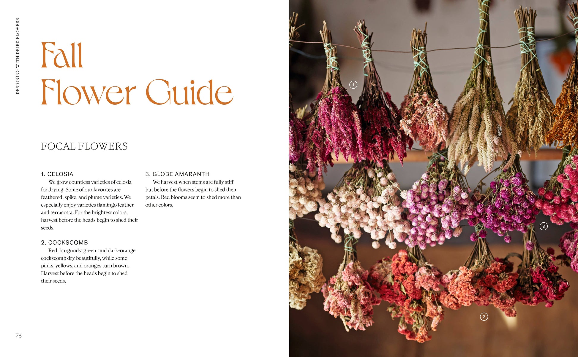 Hannah walks readers through the process of growing and drying flowers as she does at Full Belly Farm, with plenty of tips and suggestions, whether you’re an avid gardener or just picking up blooms at the supermarket. Dried arrangements are a natural and sustainable way to add beauty to your home, and Designing with Dried Flowers offers more than thirty floral designs for every occasion. Hannah shares her suggestions of what flowers to use and how to dry them.
