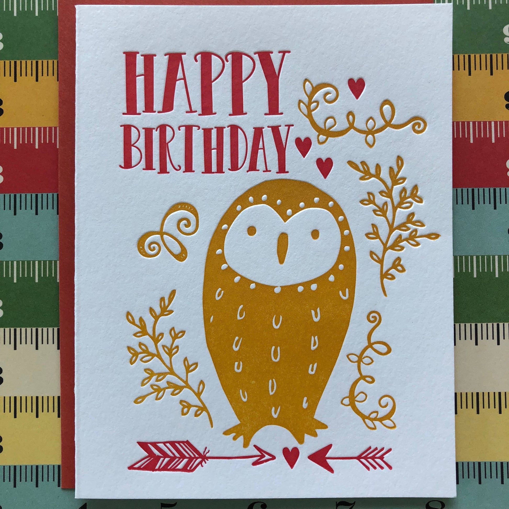 Each card was printed by hand on a vintage platen letterpress. Card comes in sleeve. Folded note card and coordinating envelope. Hand mixed inks. Letterpress printed on 100% cotton cardstock, recycled envelope. Size - 5 1/2"W x 4 1/4"H (A2 size).
