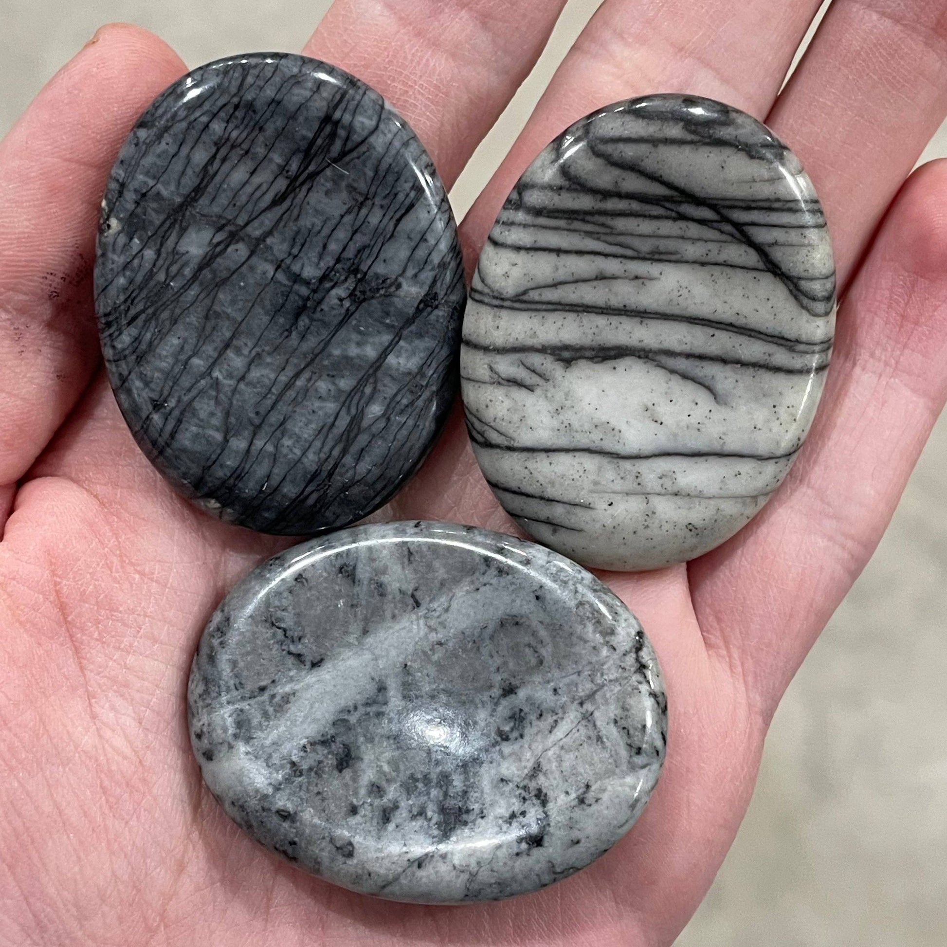 Oval Gemstone Worry Stones – Bulk Pocket Crystals: Spider Web Jasper