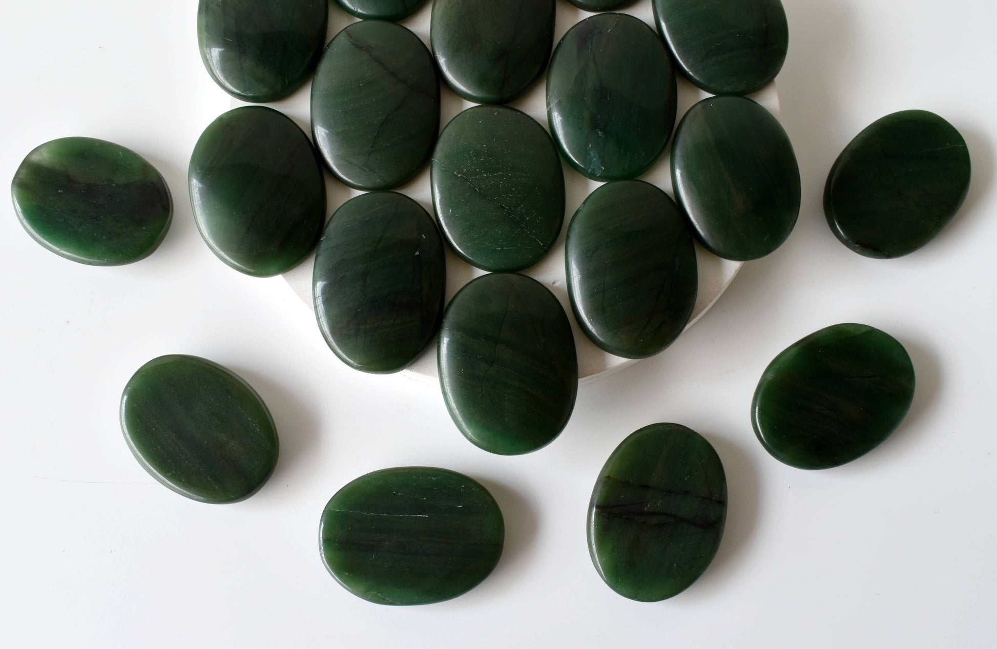 Our Green Jade Polished Oval Palm Stones are perfect for those seeking balance and harmony in their lives. It's a rubbing stones for stress relief. Green Jade is known for its healing properties, promoting emotional stability, and attracting abundance and prosperity.