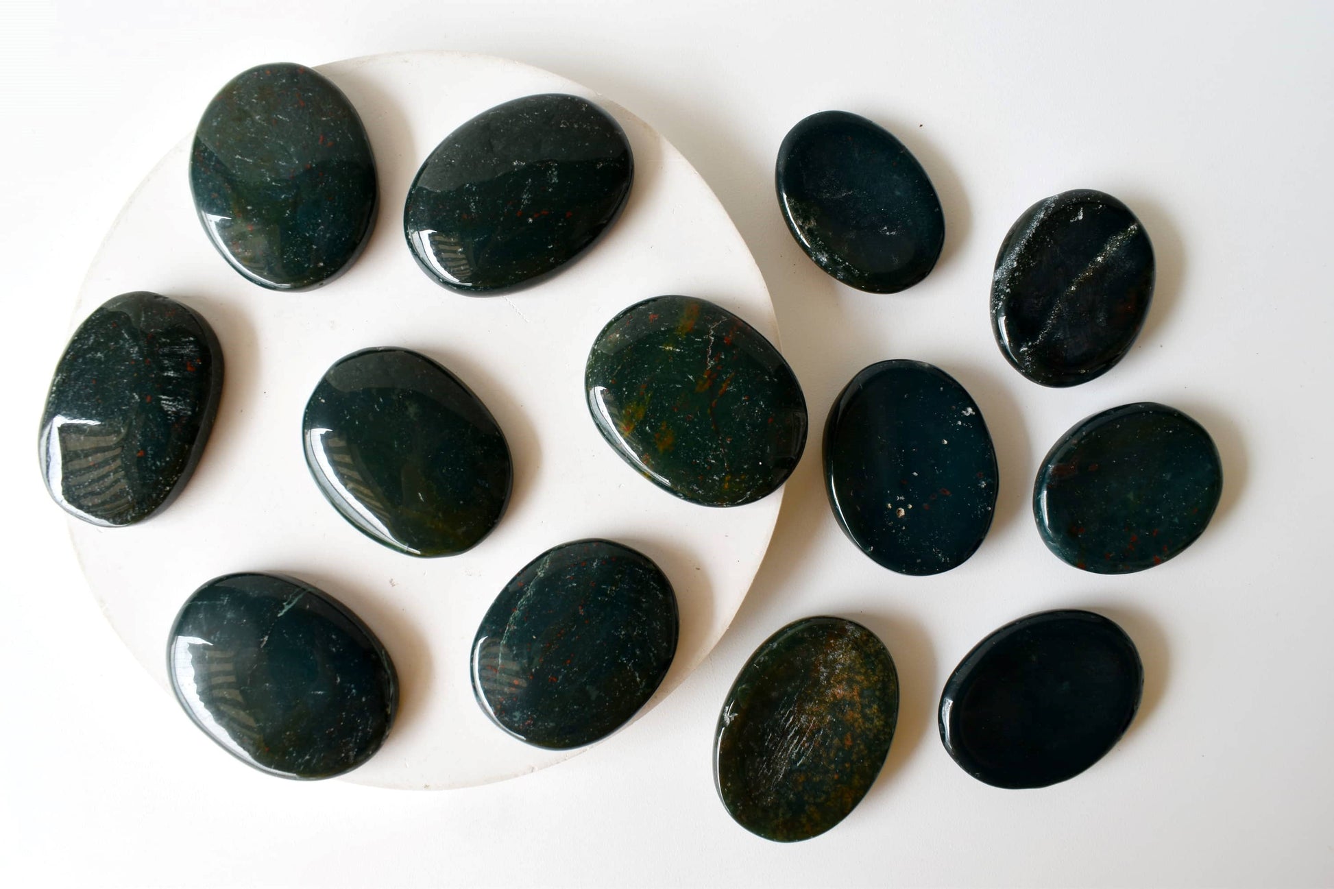 Palm Stones | Bloodstone | Thumb Crystal | Pocket Gemstone: Thumb Indent (Worry Stone)