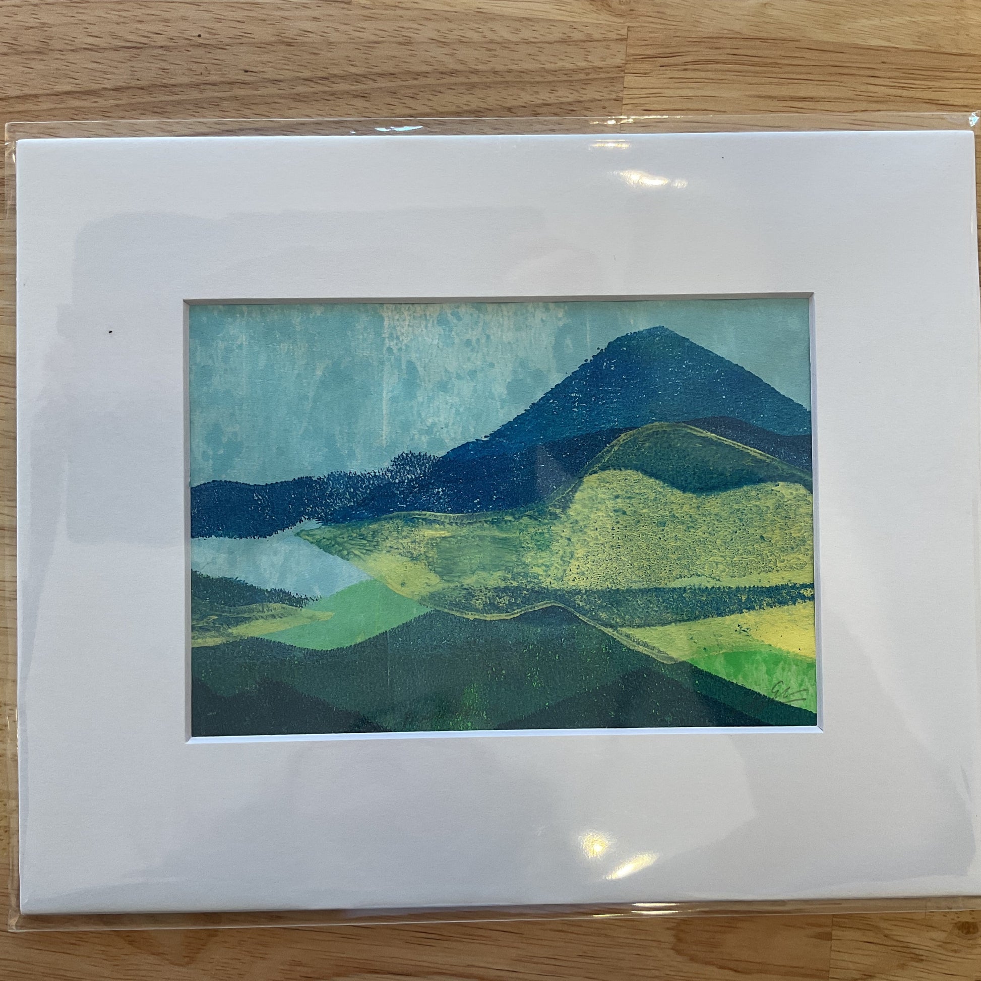 Mono print of White Mountains. 4.5x6” print matted 8x10”
